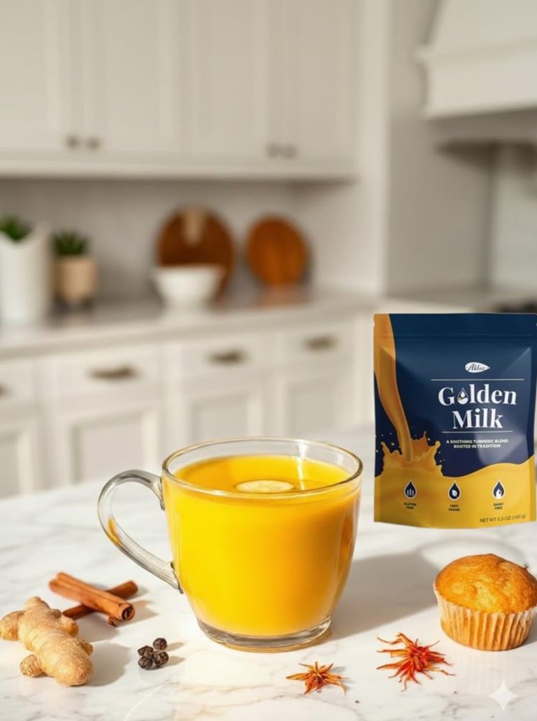 3. In another bowl, mix the golden milk powder by Akloz, melted coconut oil, and honey or maple syrup until well combined.